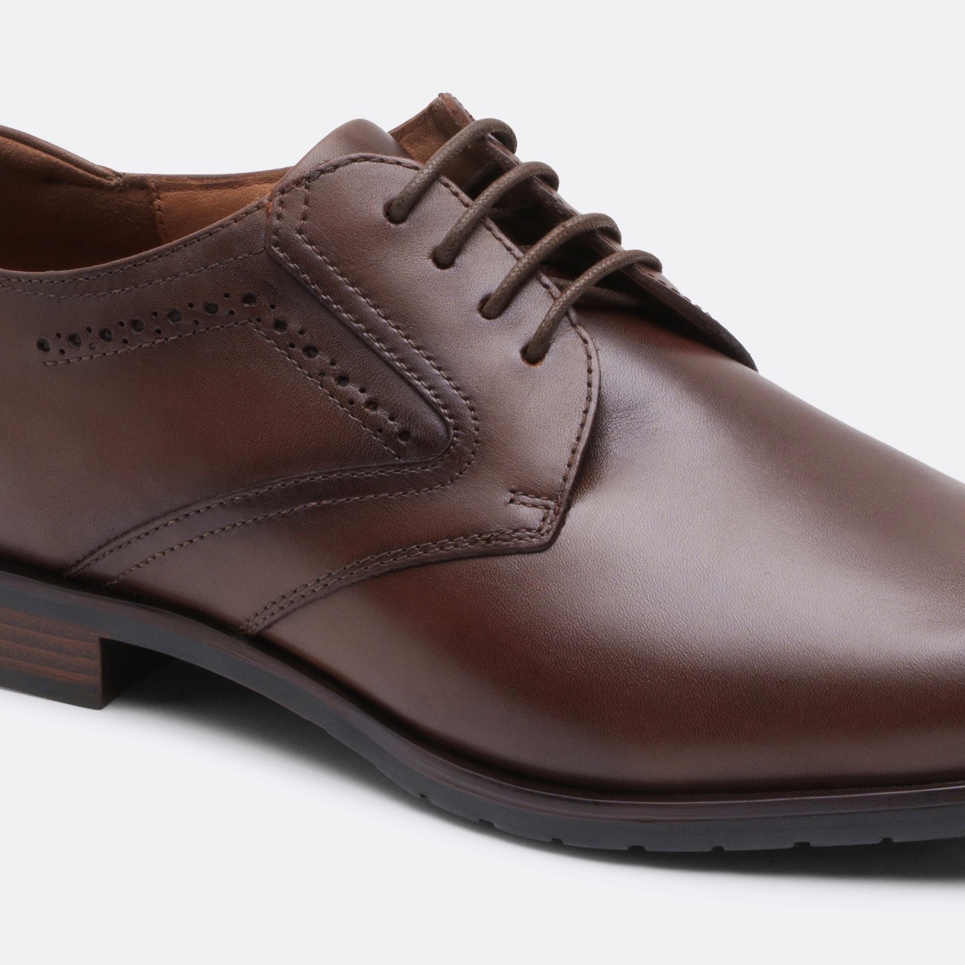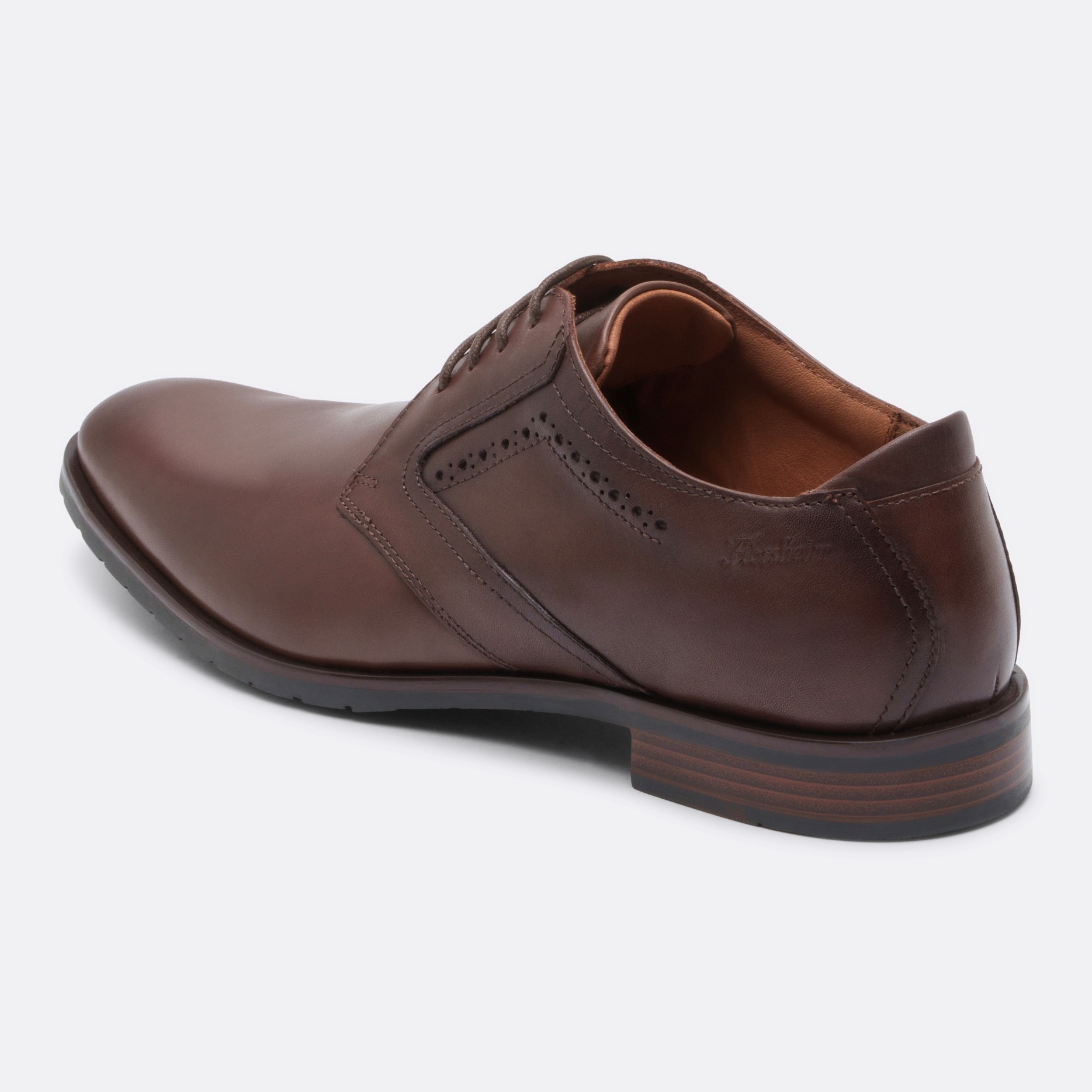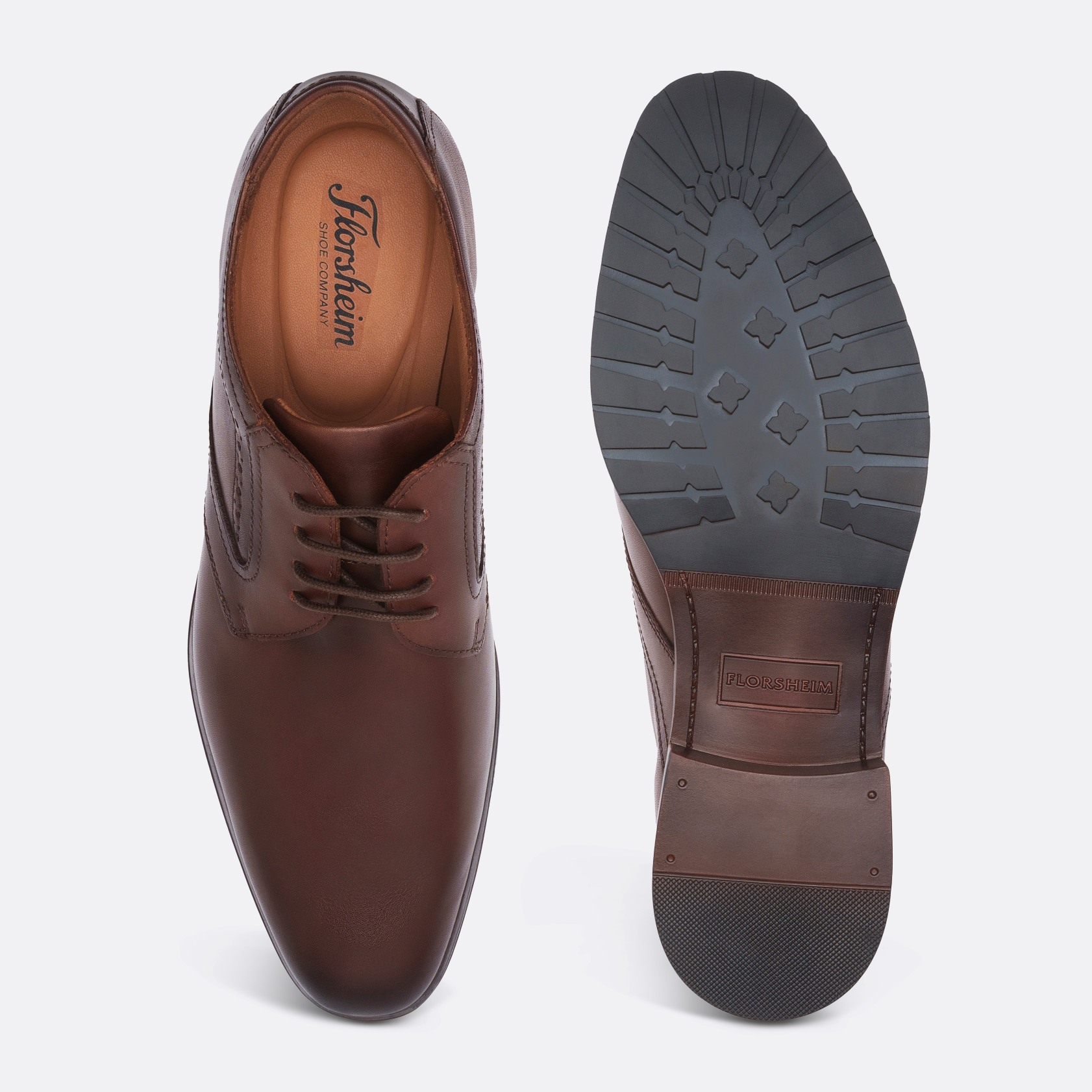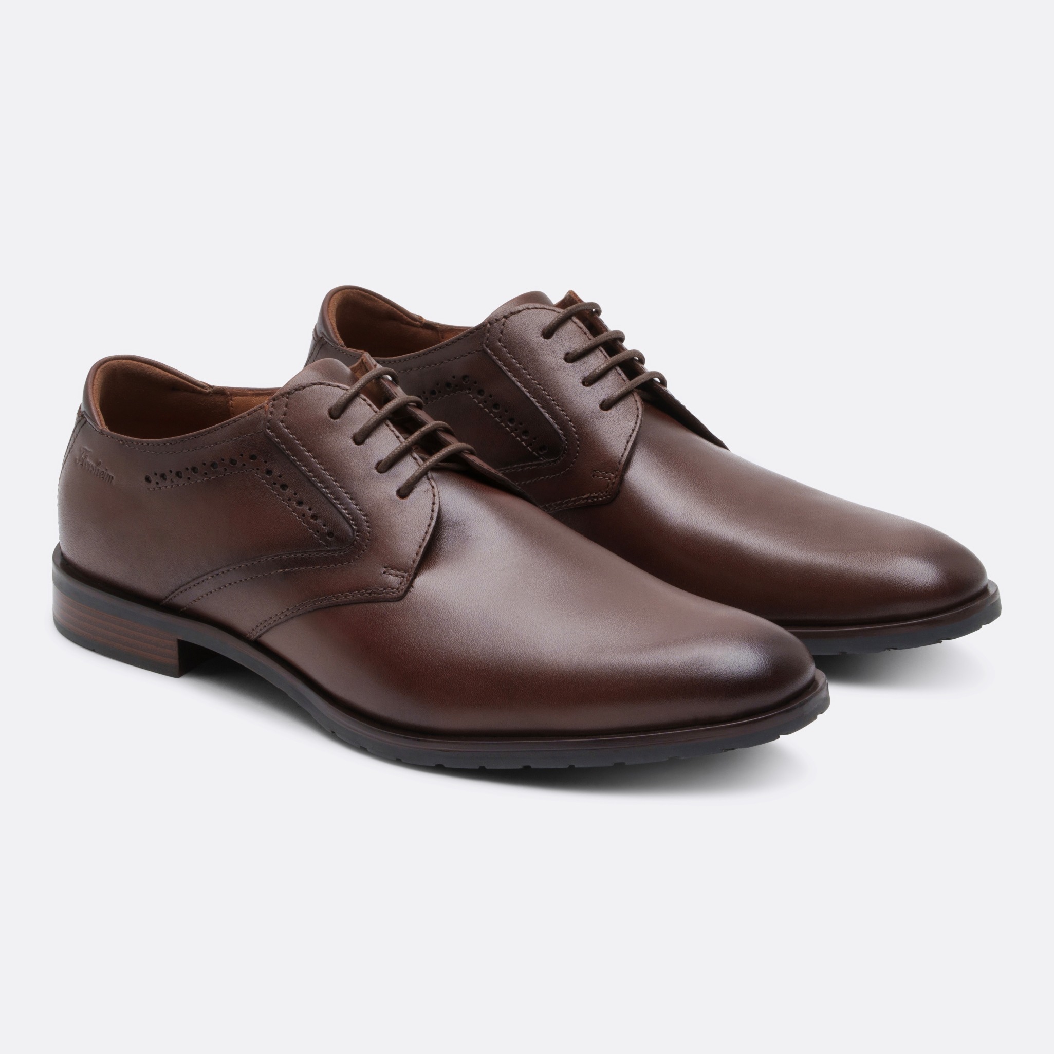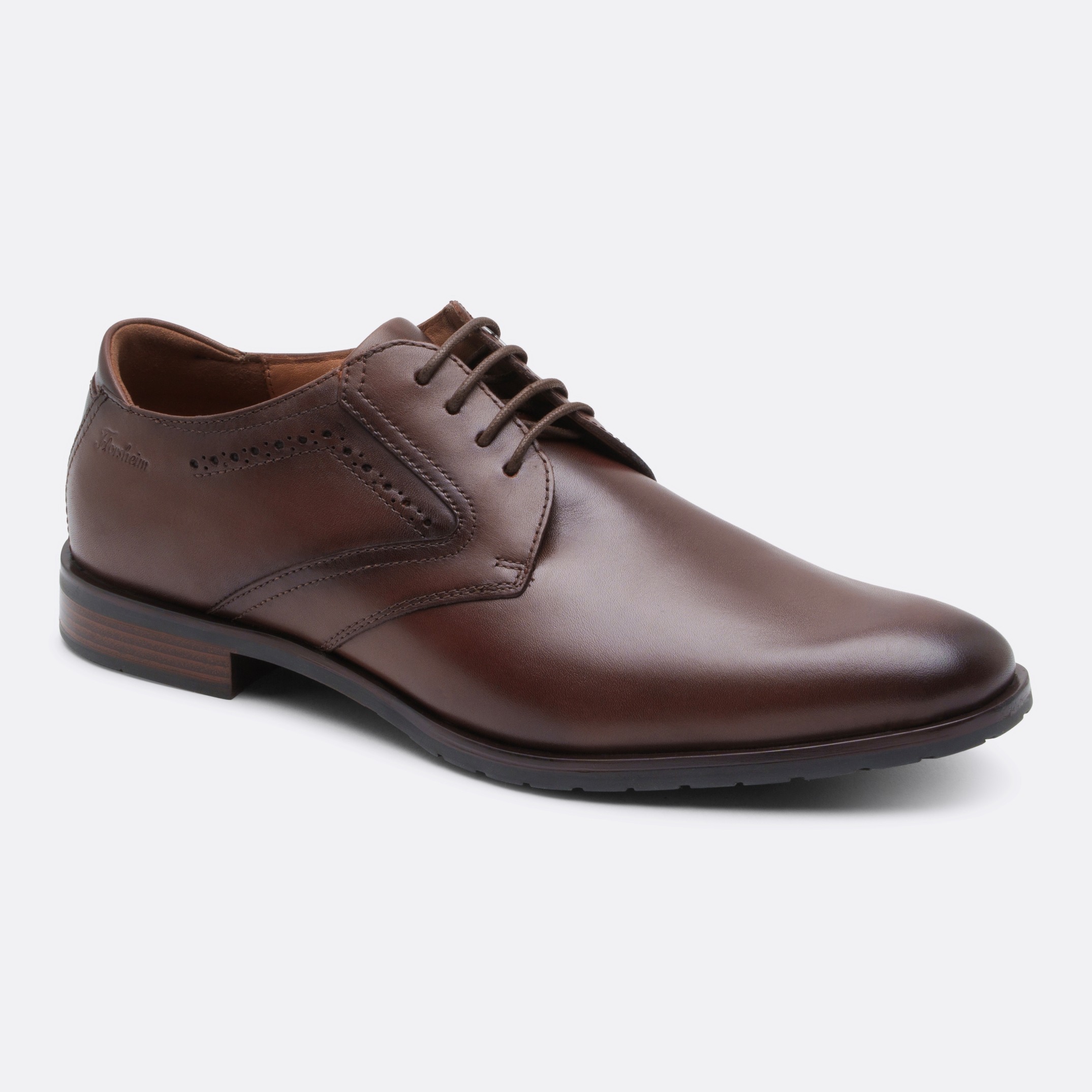 Step into classic sophistication with Florsheim Tan derby lace-ups in premium leather. The open-lace design delivers a sharp and timeless appeal. A durable TPR sole ensures strong grip and lasting comfort. Ideal for formal wear and smart professional styling.