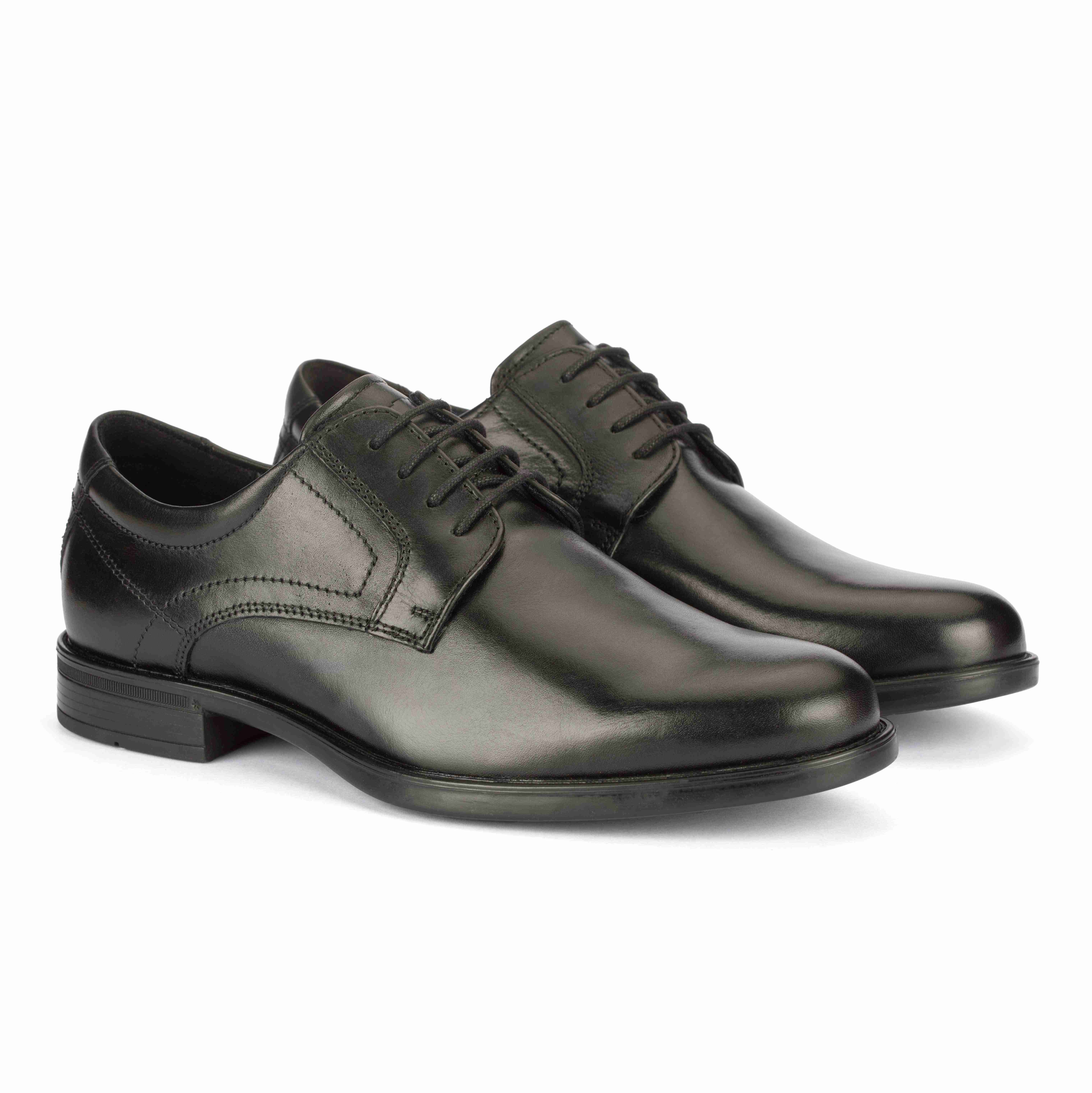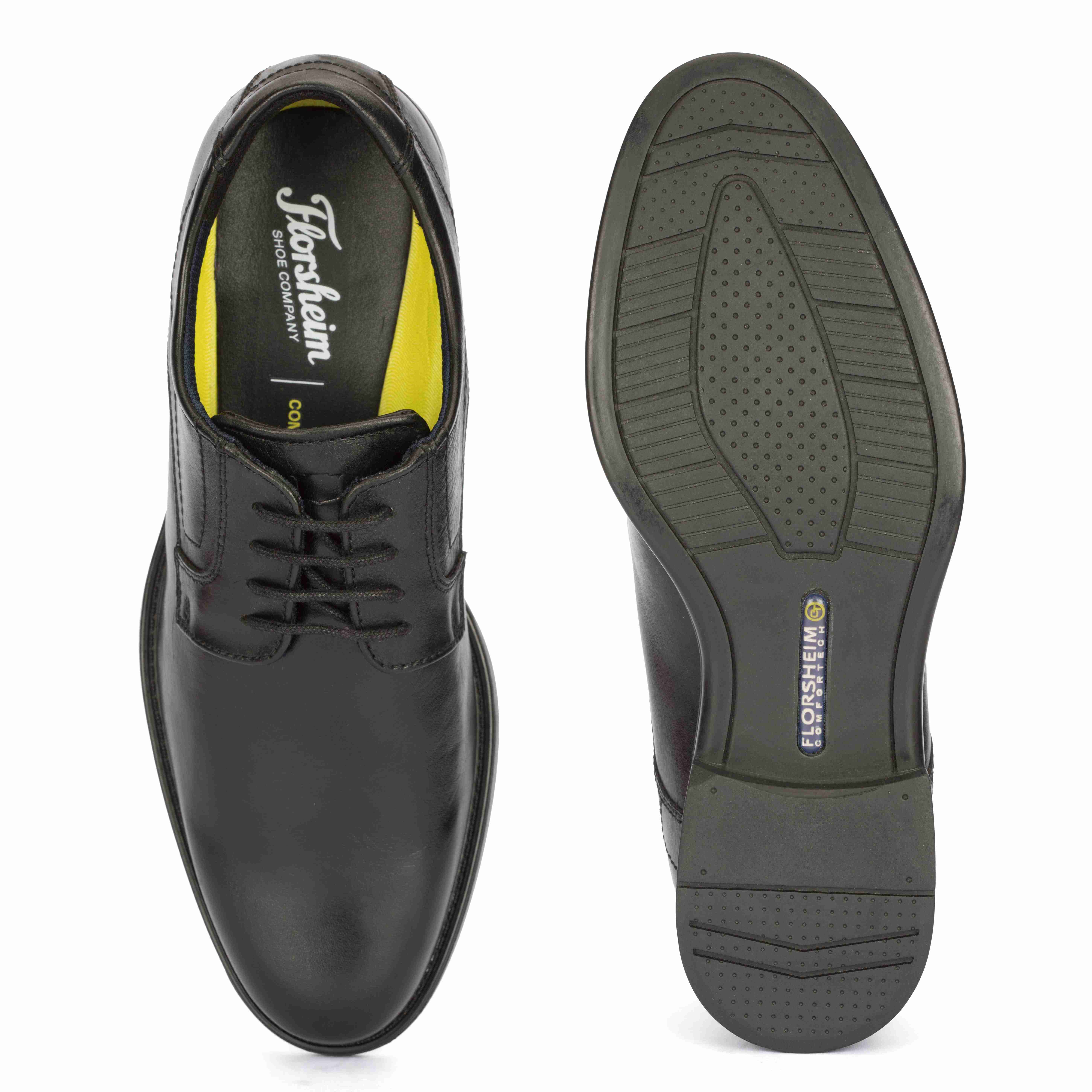 Florsheim Black Formal Derby Lace-Up Shoes feature a classic design with a clean, polished look. Designed with a comfortable derby lace-up closure for a secure fit. The durable rubber sole offers excellent grip and long-lasting support. Ideal for office wear, business meetings, and formal occasions.