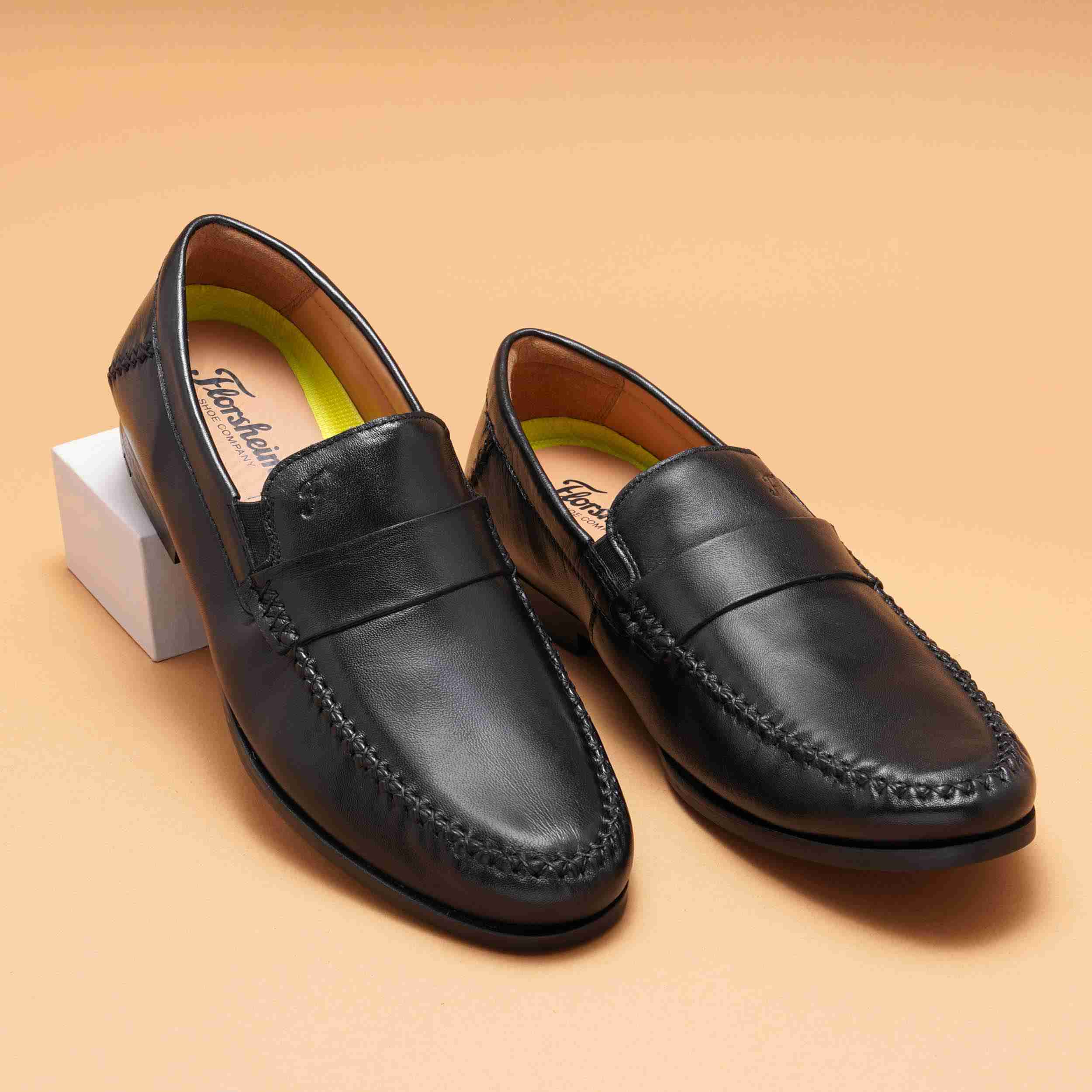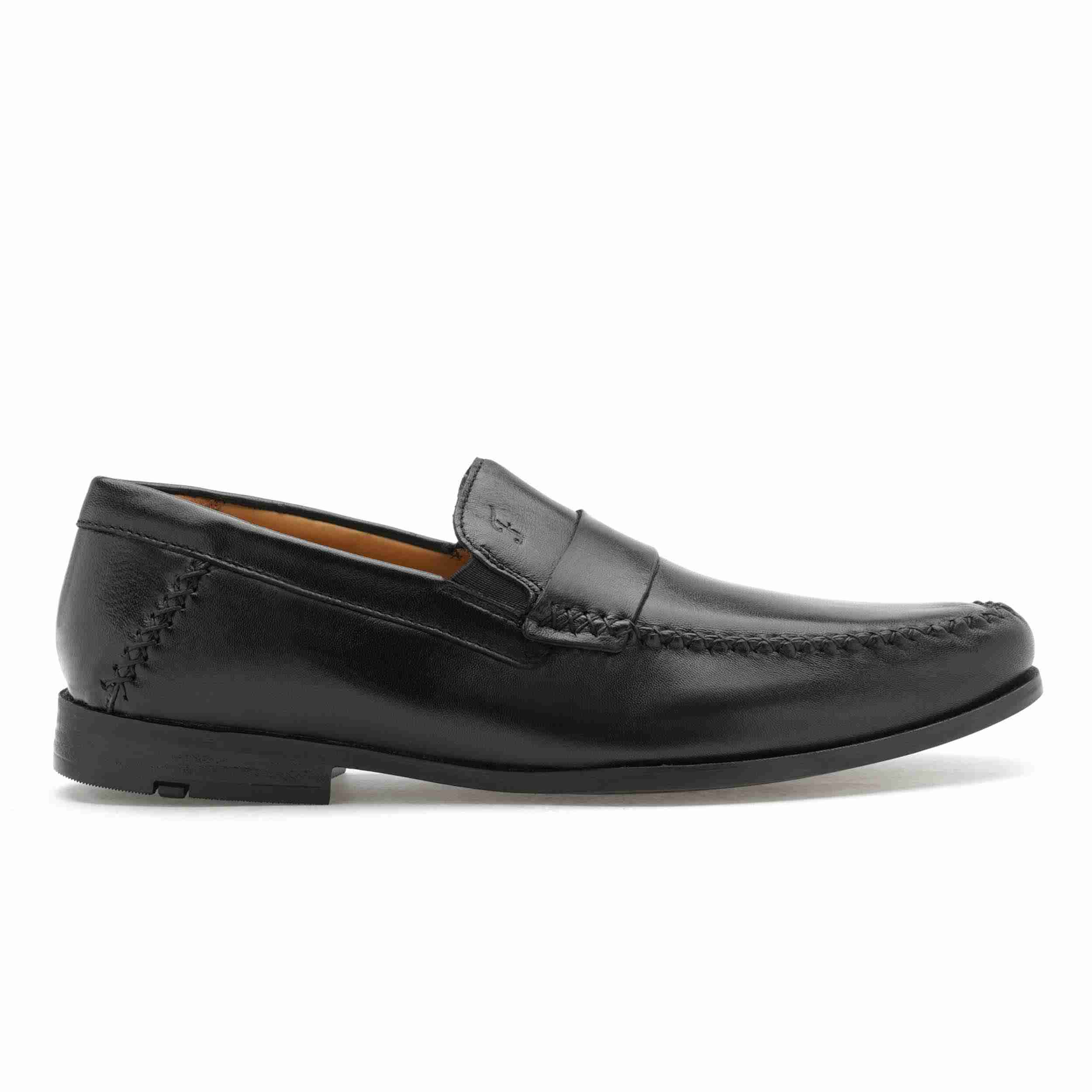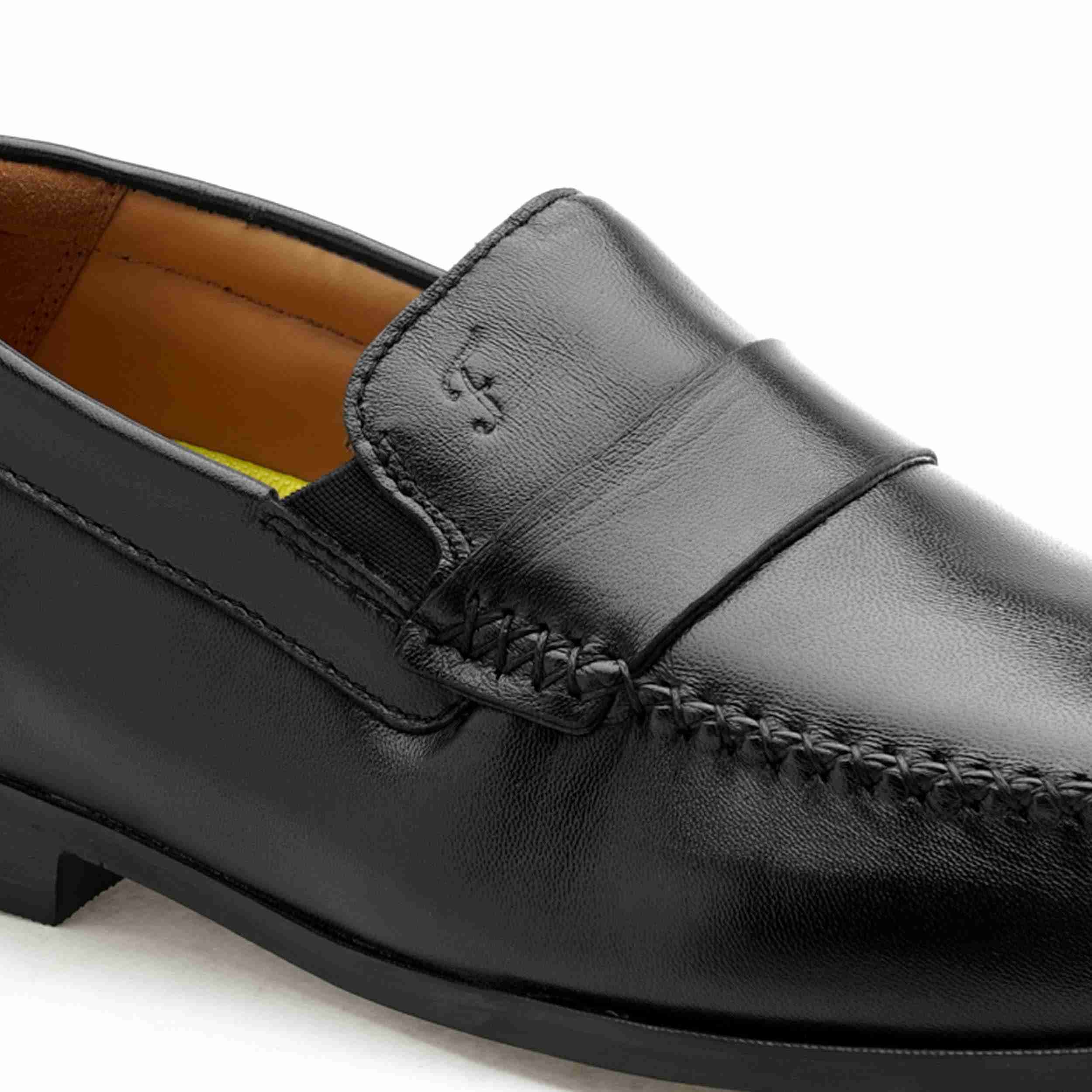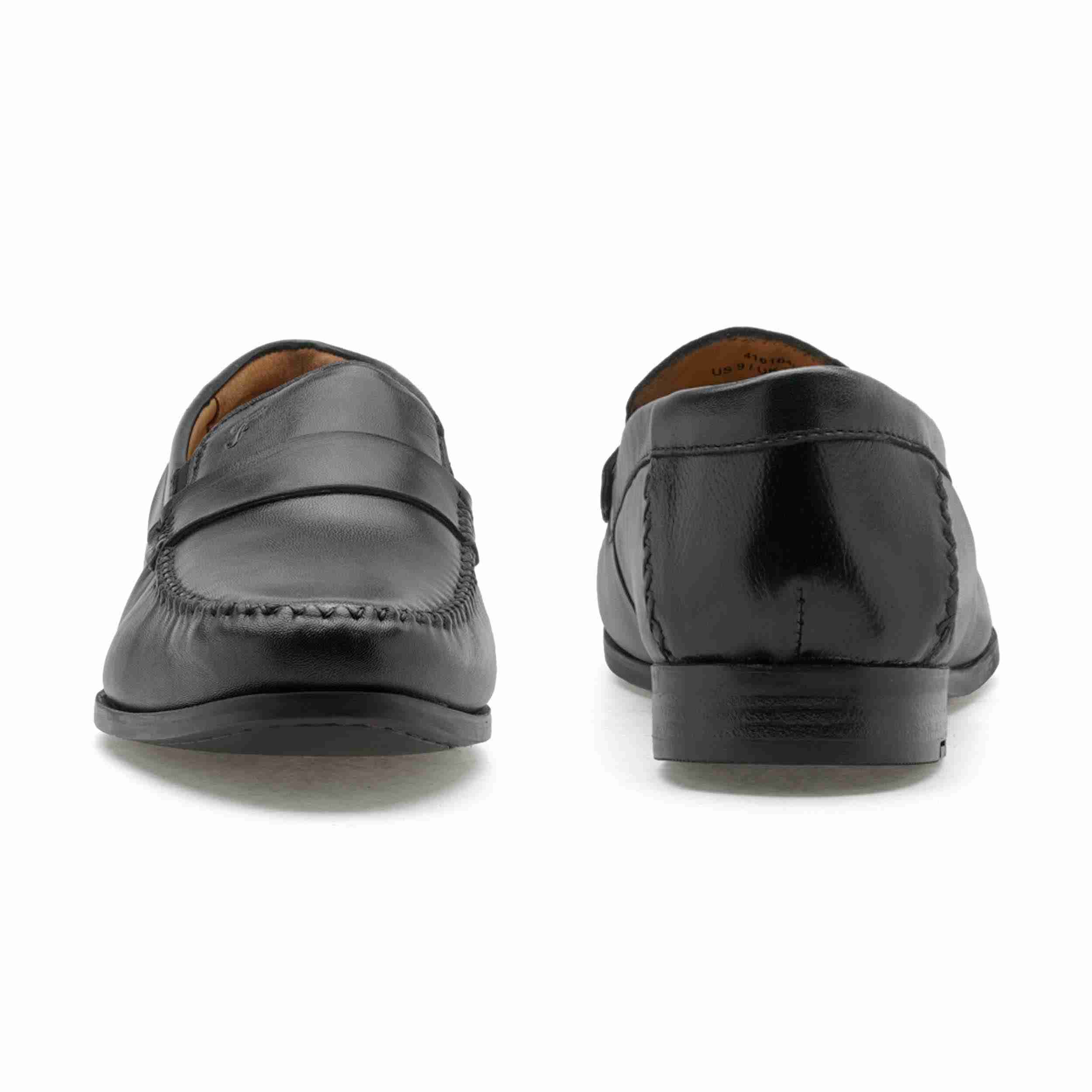 Experience refined comfort in these black leather slip-on formal shoes. The sleek black leather exudes classic sophistication, while the slip-on design seamlessly combines style with ease. Elevate your formal attire with these shoes, where comfort meets timeless elegance in every step.