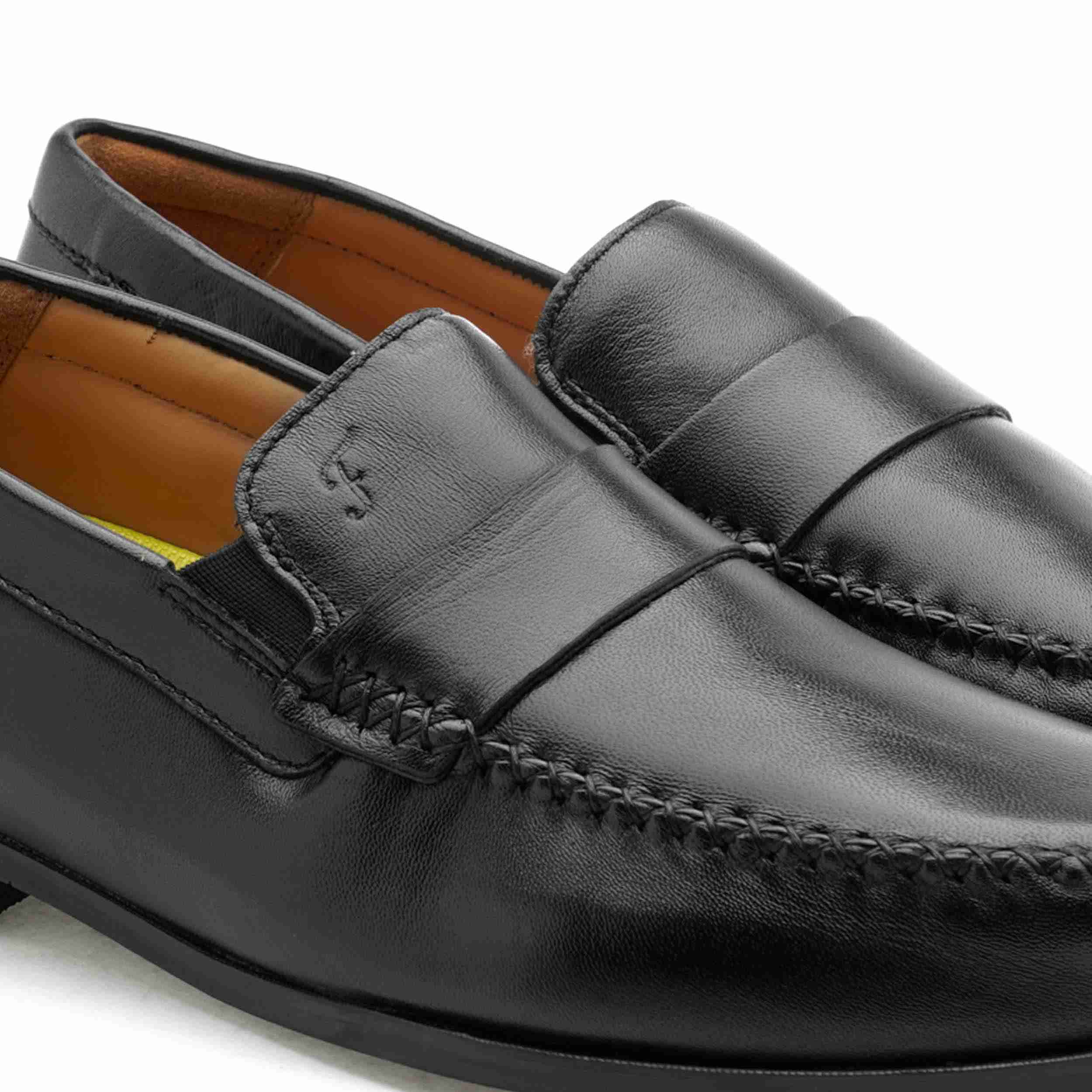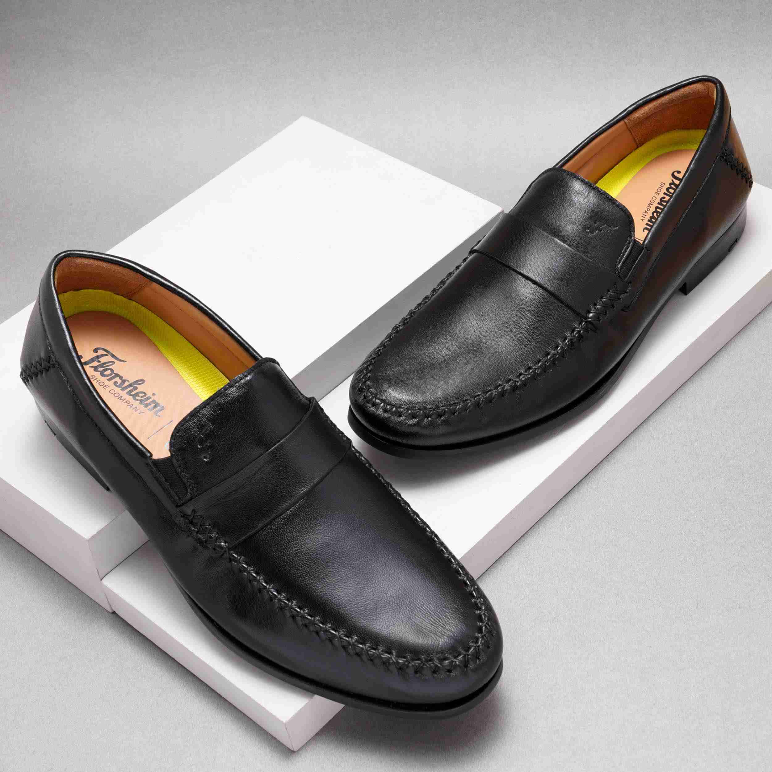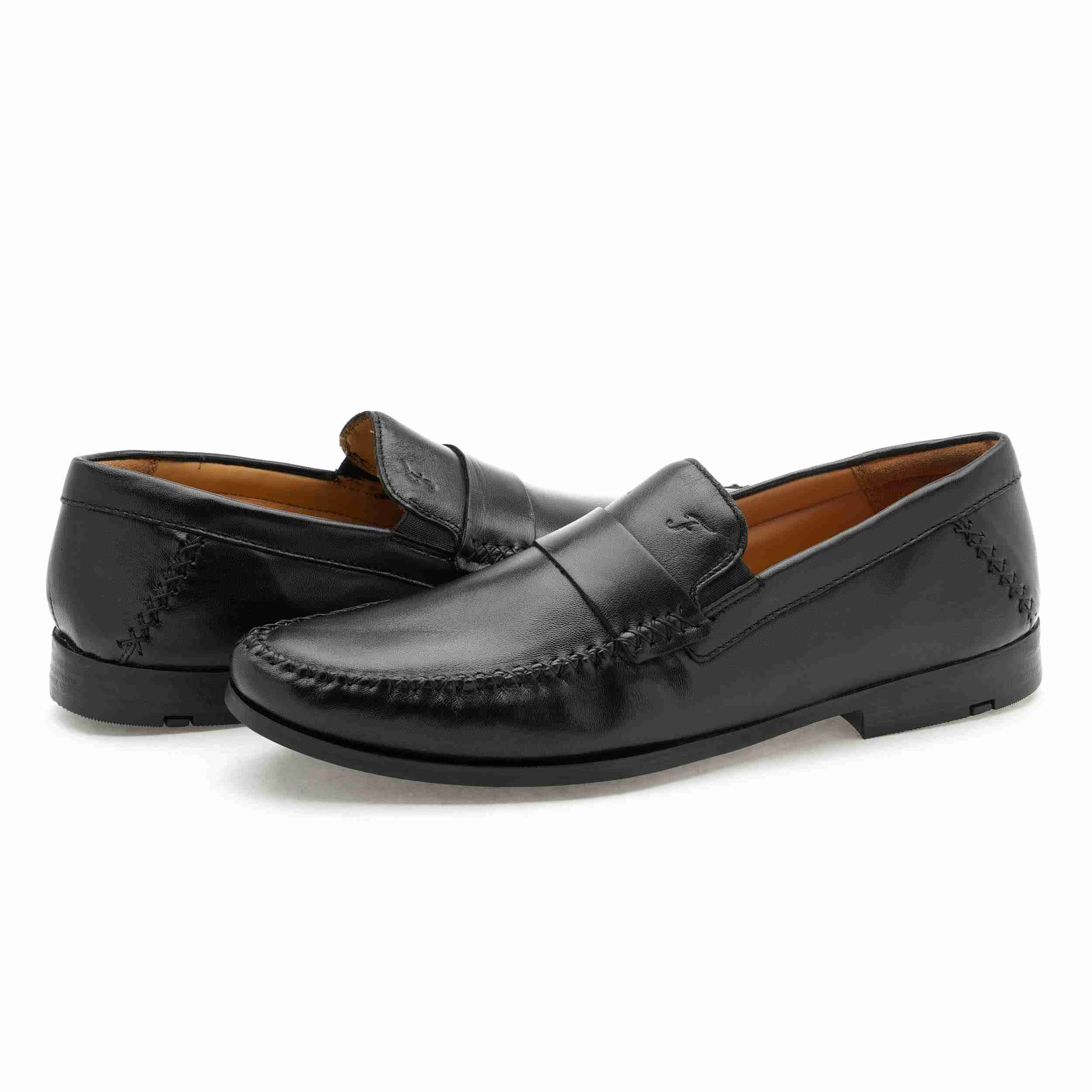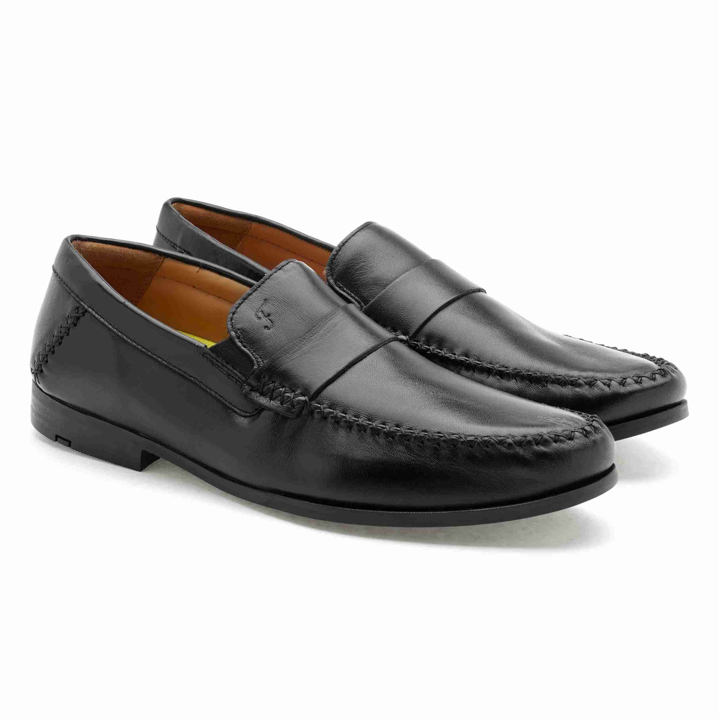 Experience refined comfort in these black leather slip-on formal shoes. The sleek black leather exudes classic sophistication, while the slip-on design seamlessly combines style with ease. Elevate your formal attire with these shoes, where comfort meets timeless elegance in every step.