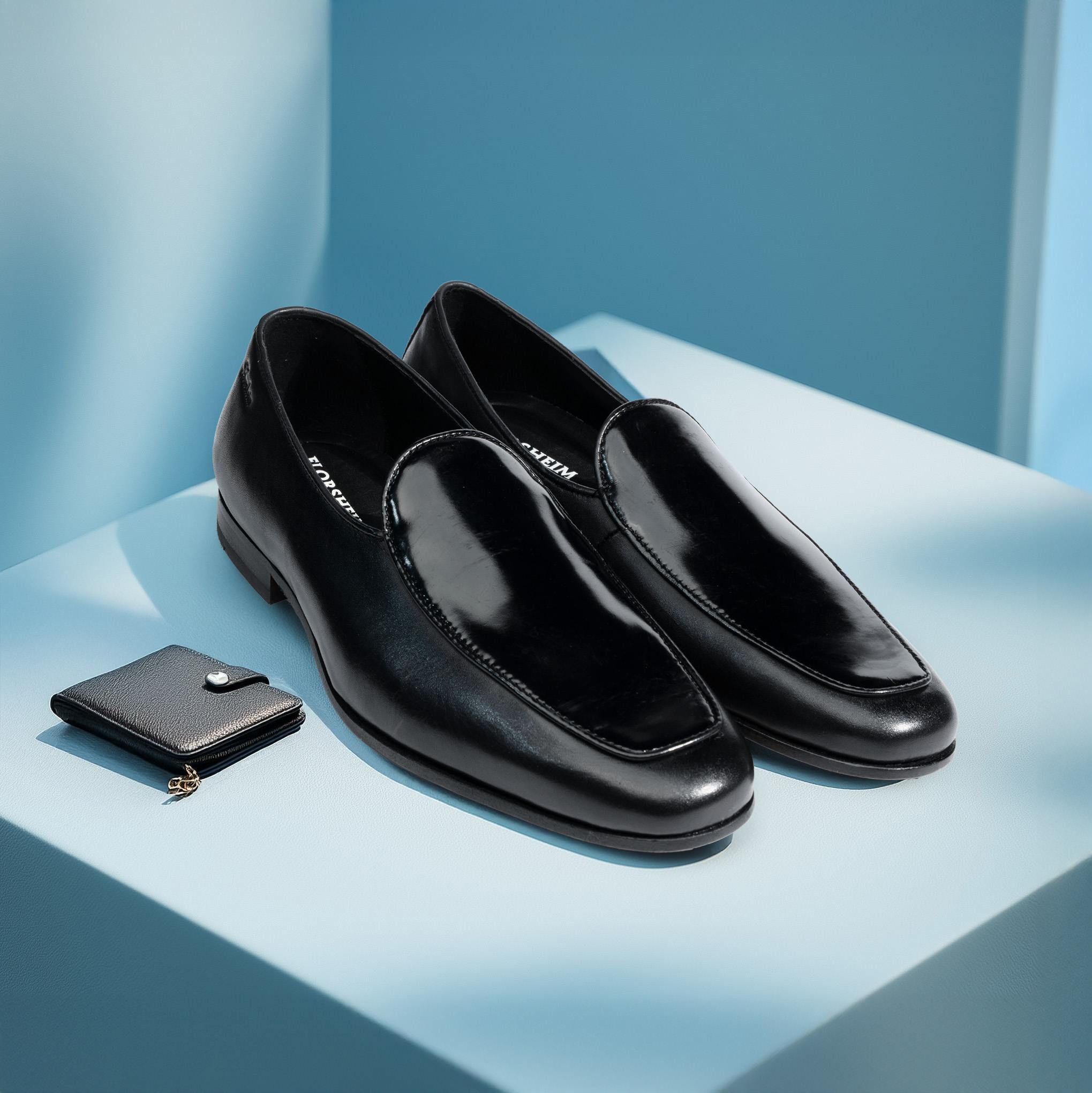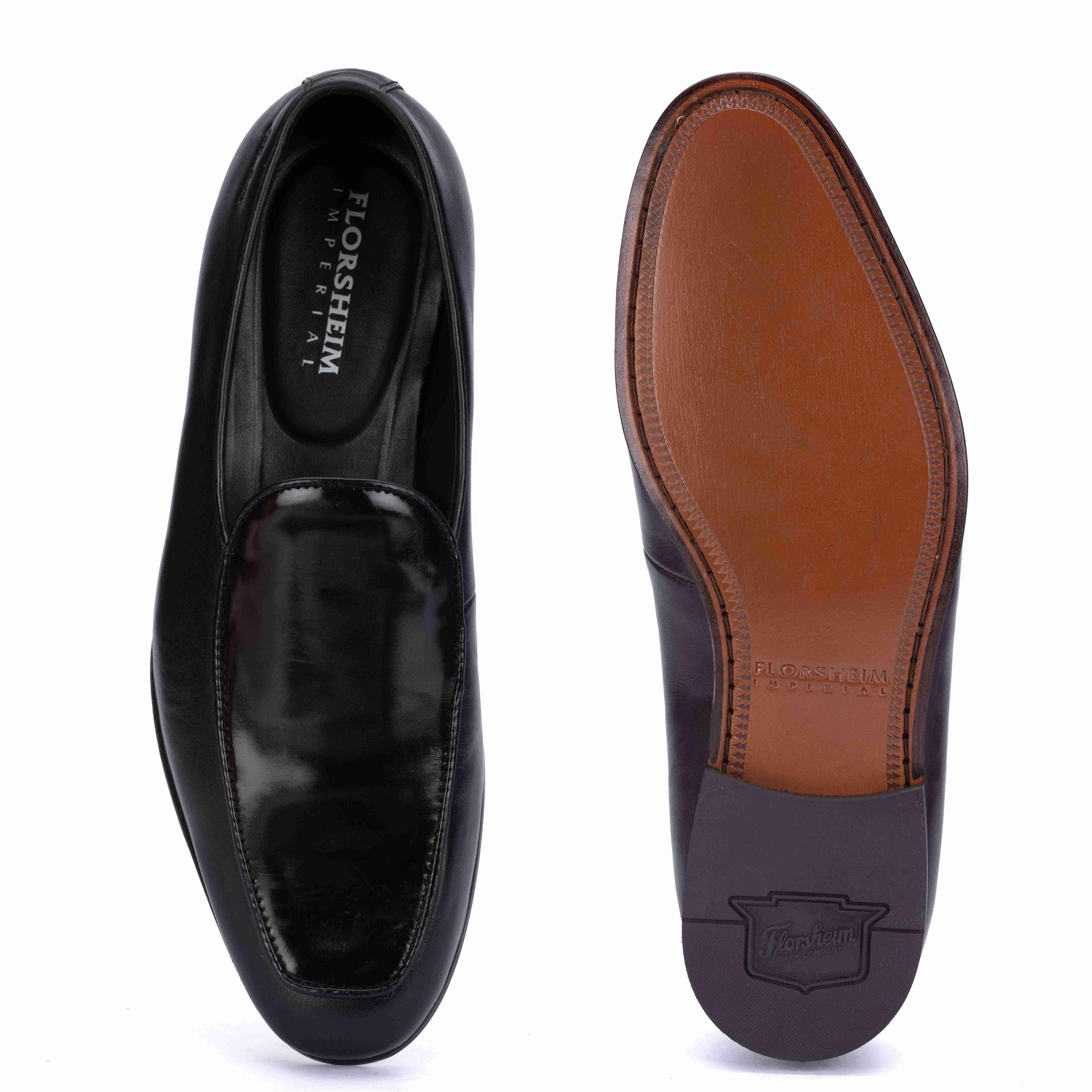 Florsheim Black Patent Occasion Slip-on Shoes feature a patent finish for a sleek, polished look. Crafted for comfortable slip-on wear with a classic design. The durable leather sole ensures lasting elegance and support. Perfect for casual outings and smart-casual occasions.