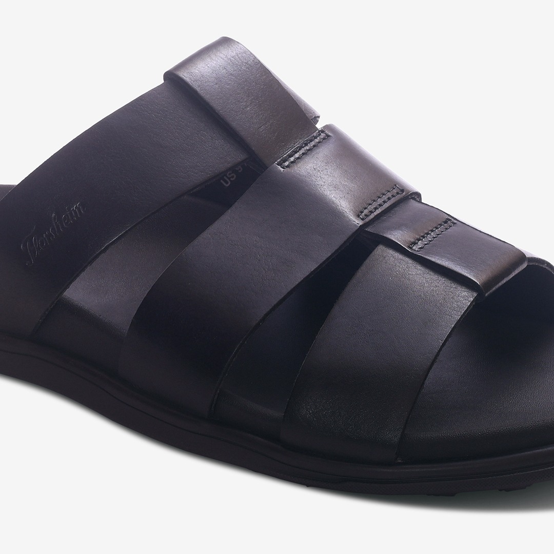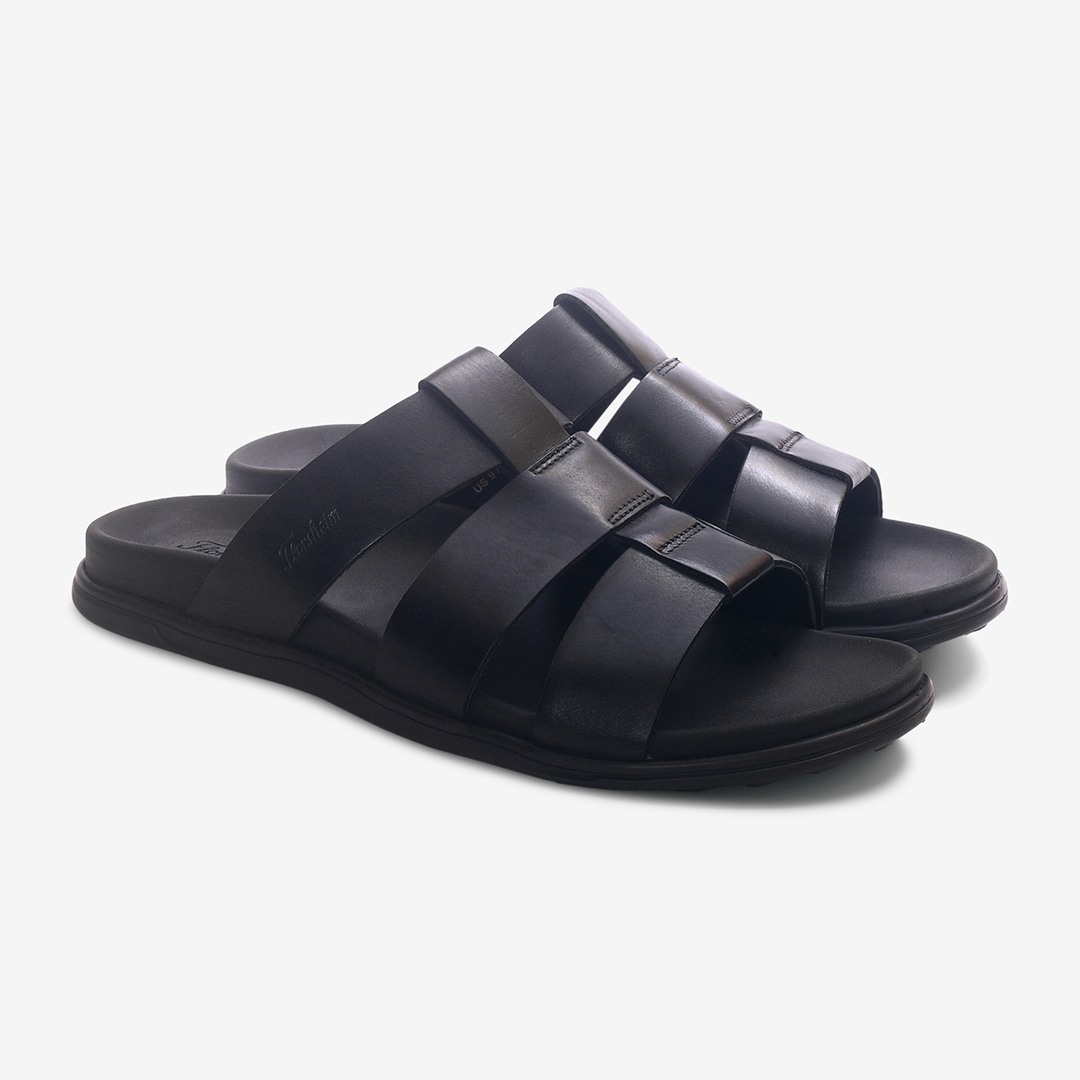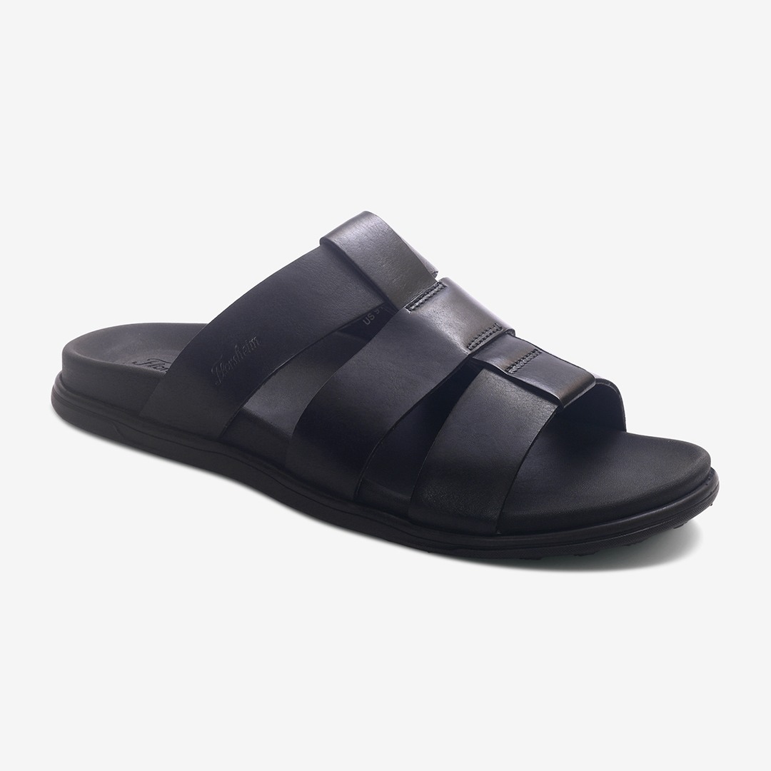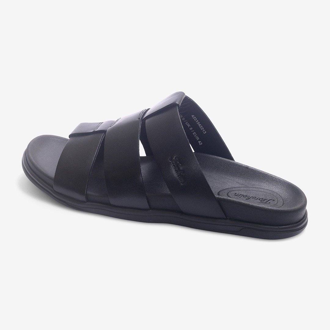 Florsheim Black sandals made from premium plain leather. Minimal design with a refined touch. Comfort-focused straps for easy wear. Flexible EVA sole for smooth movement.