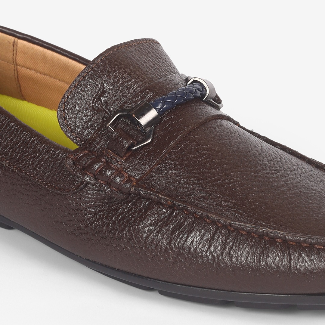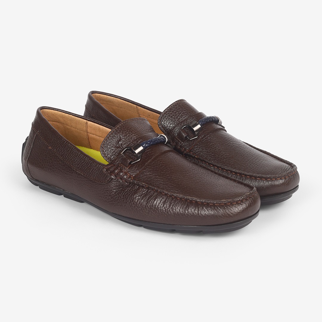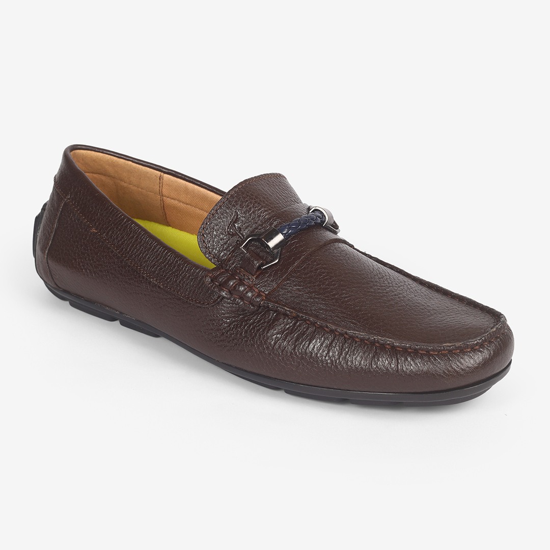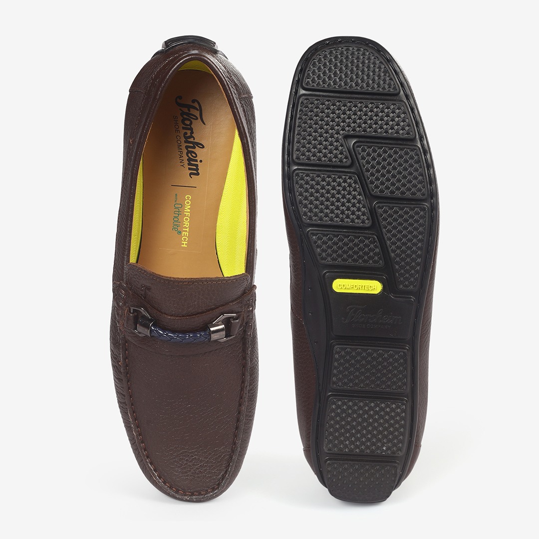 Step into effortless style with Florsheim brown drivers in premium milled leather. The rich textured finish adds a bold, refined look. A lightweight EVA sole ensures cushioned comfort and flexibility. Perfect for smooth drives and smart casual wear.