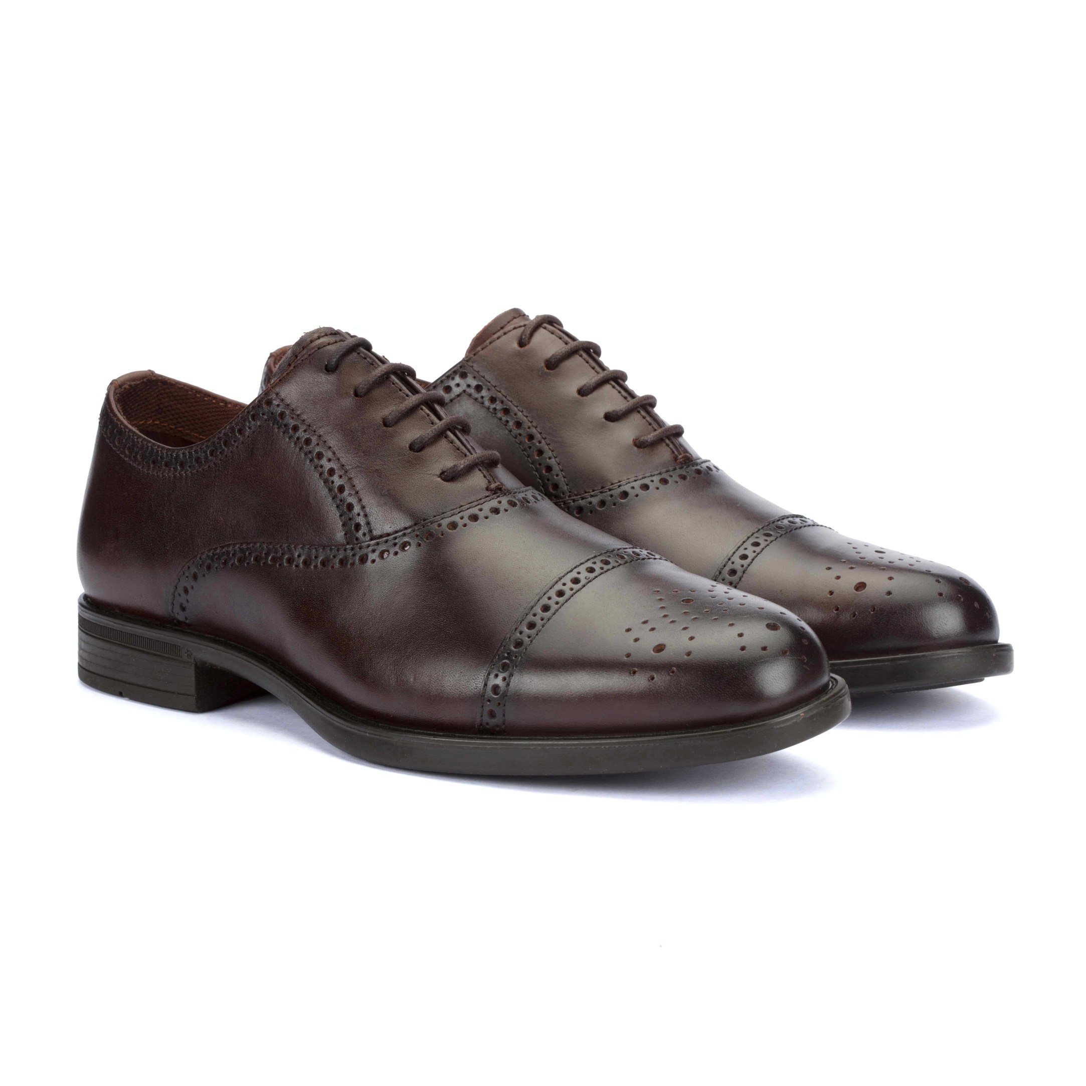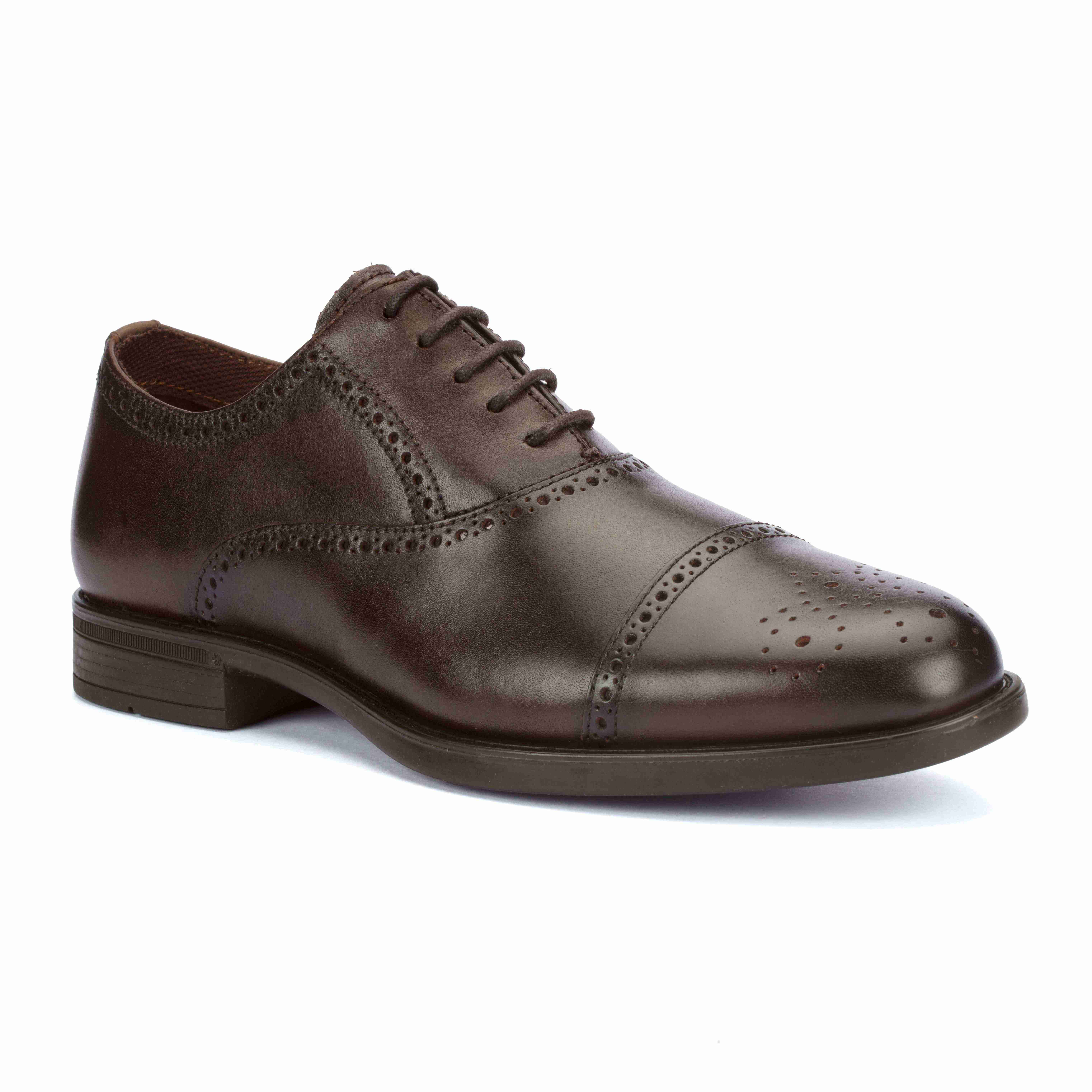 Florsheim Brown Oxford Formal Shoes crafted for timeless sophistication. Features intricate brogue detailing for a refined, classic look. Designed to complement business and formal attire. Durable construction ensures comfort and long-lasting wear.