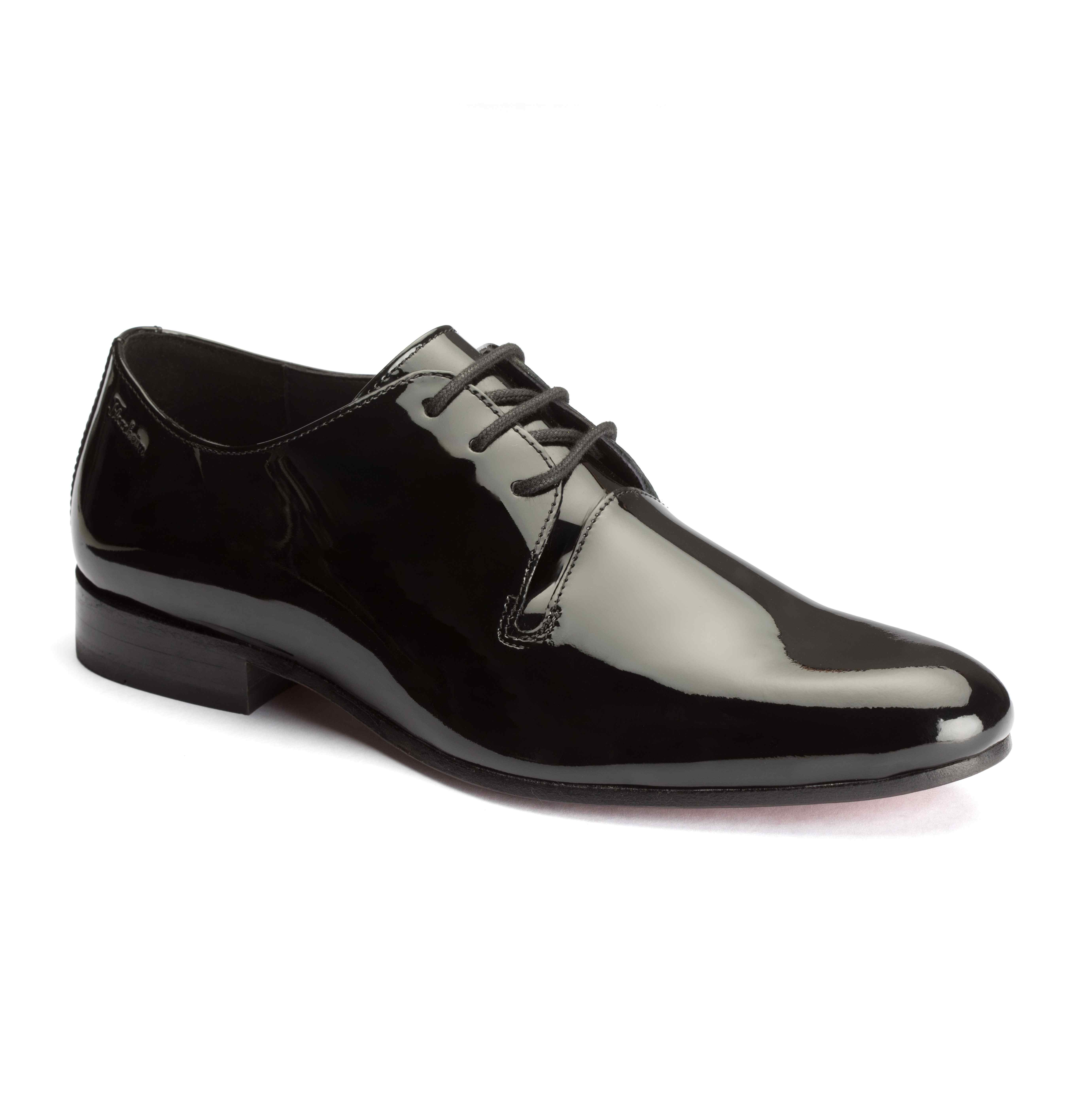 Florsheim Black Patent Occasion Derby Shoes are crafted using patent leather for a striking, polished look. Designed for a comfortable and secure lace-up fit. The durable leather sole ensures lasting elegance and support. Perfect for formal events, business meetings, and stylish occasions.