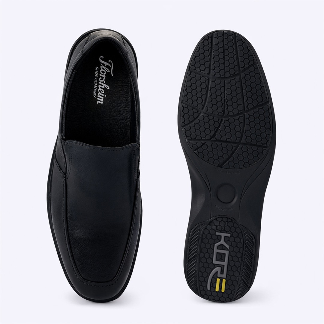 Refine your formal style with Florsheim black loafers in premium leather. The sleek silhouette offers a timeless, polished look. A lightweight EVA sole provides superior comfort and flexibility. Perfect for office wear and sophisticated occasions.