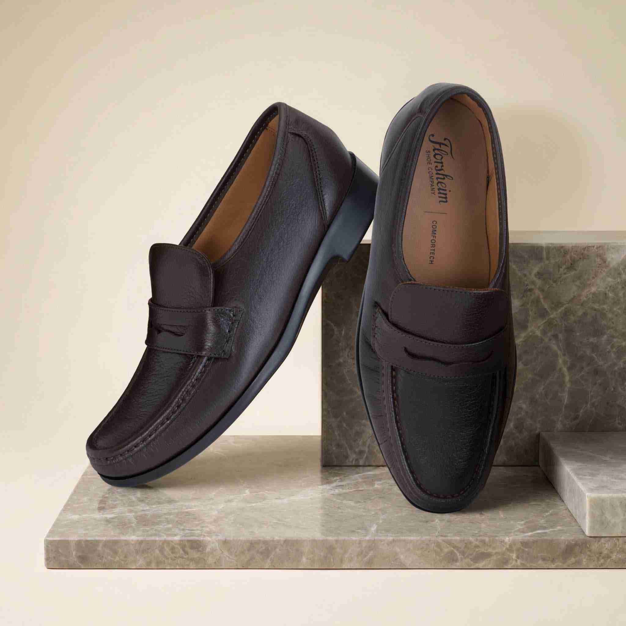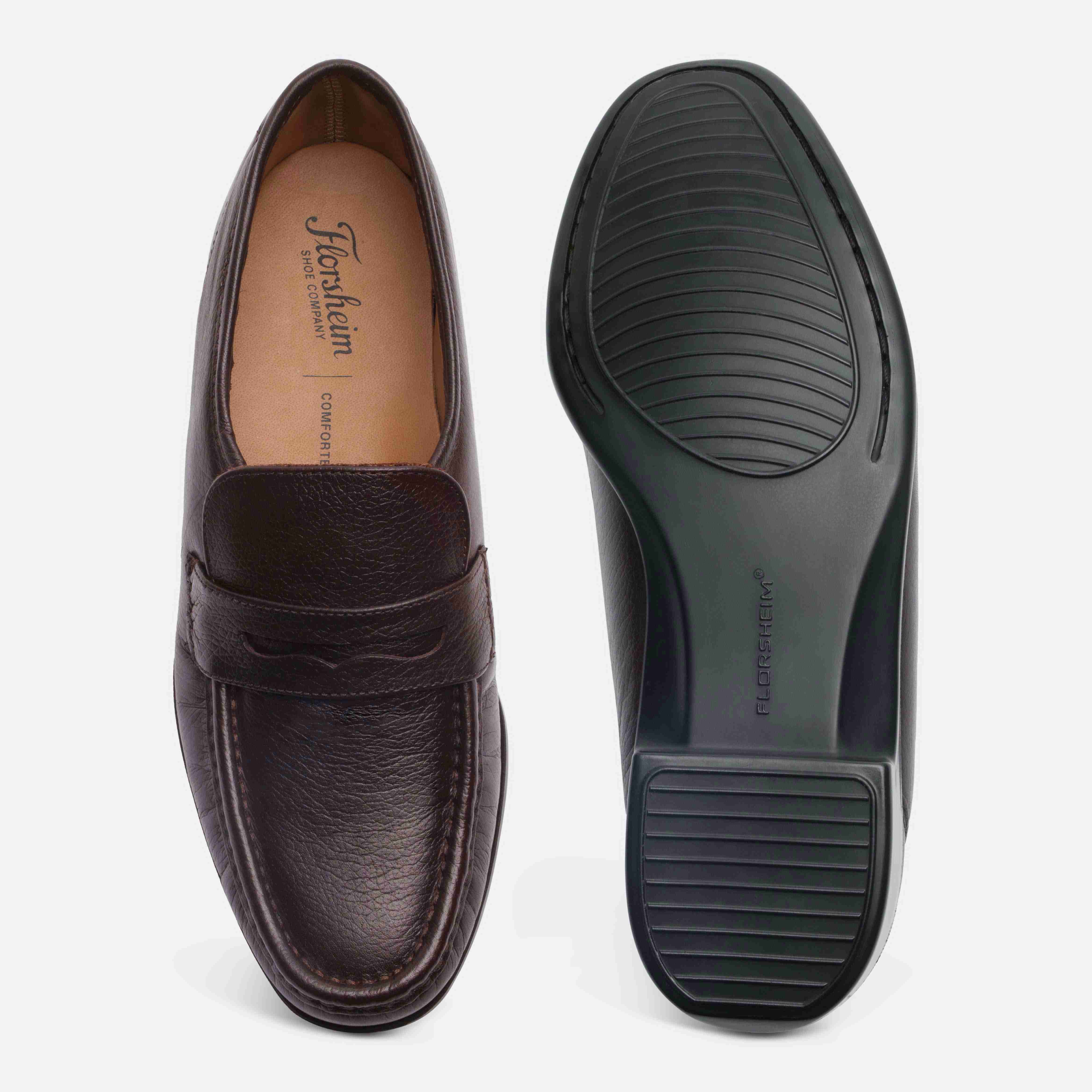 Step into effortless elegance with Florsheim Brown Penny Loafers in luxurious milled leather. The iconic penny strap detail delivers a polished, heritage-inspired style. Finished with a durable PU sole for smooth comfort all day. A premium essential for the modern gentleman.