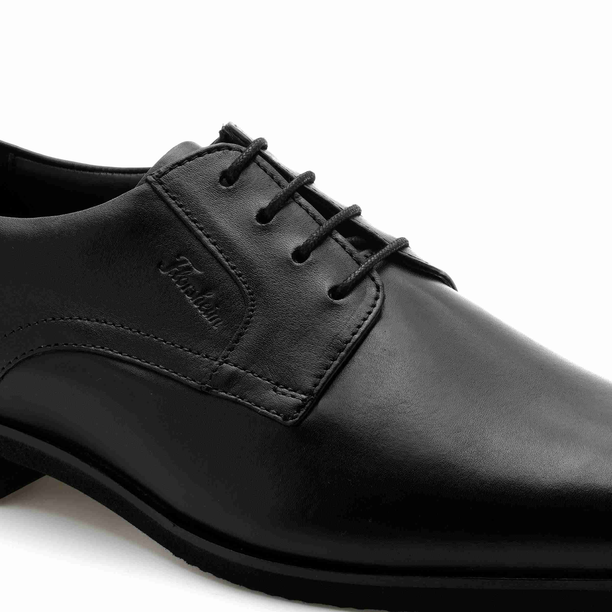 Made from genuine leather, this classic black lace-up provides unmatched comfort with a cushioned footbed, durable sole, and supportive counter padding. A sleek, versatile design perfect for any formal or casual occasion.