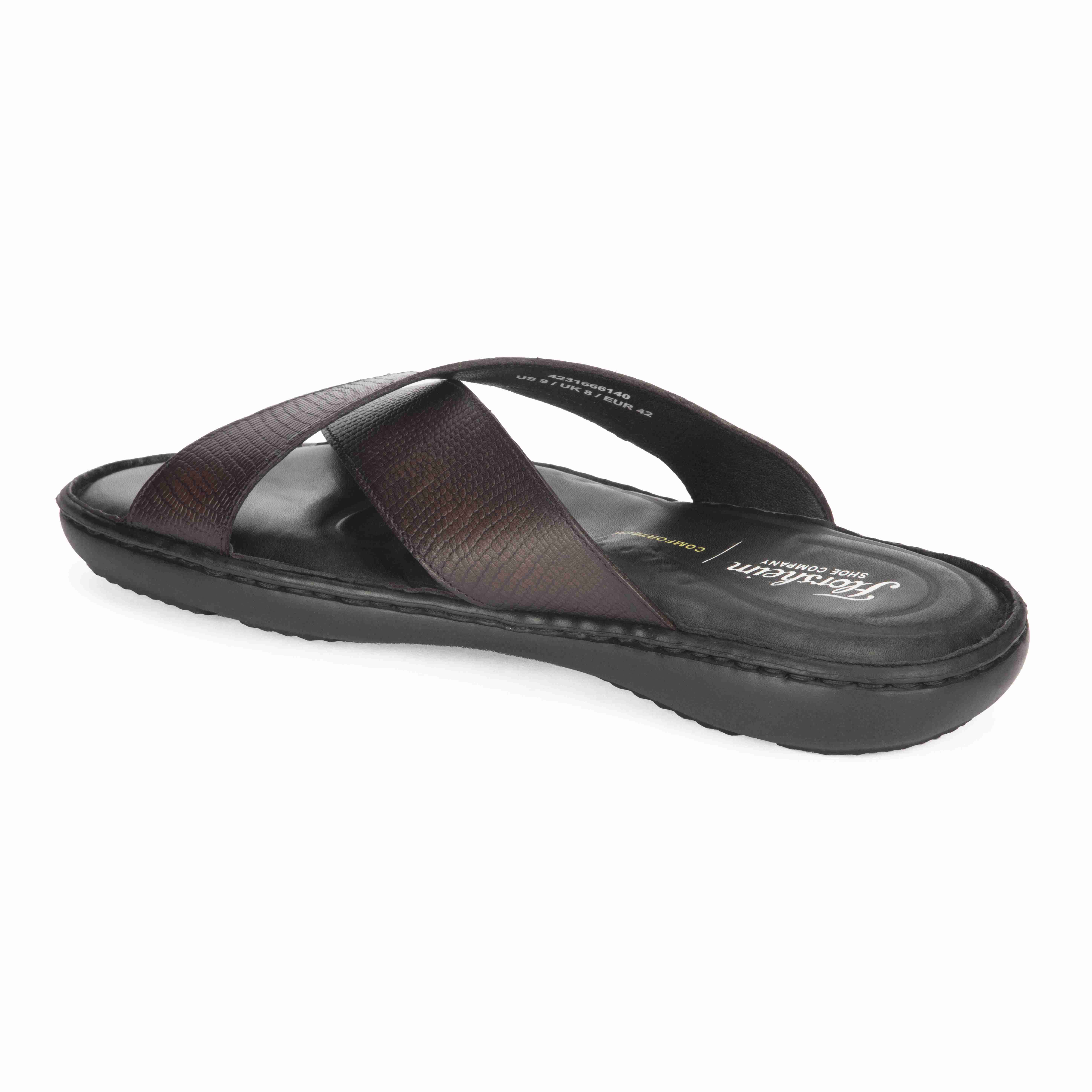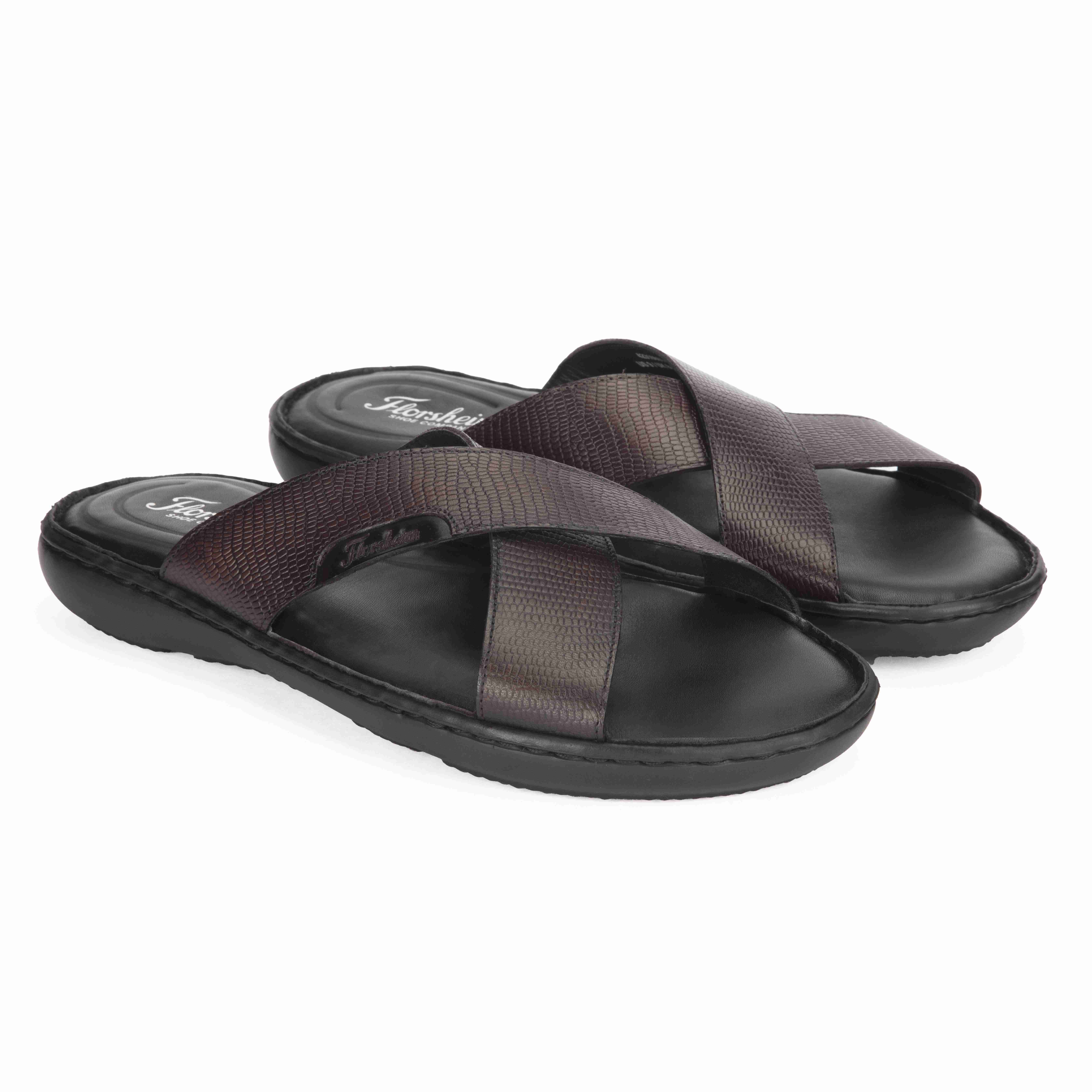 Stand Out In Subtle Sophistication With These Burgundy Leather Sandals, Highlighted By A Unique Crisscross Upper Design. Merging Elegance With Ease, They’Re Built For Comfort With A Contoured Footbed And Breathable Construction — Ideal For The Style-Conscious Gentleman.