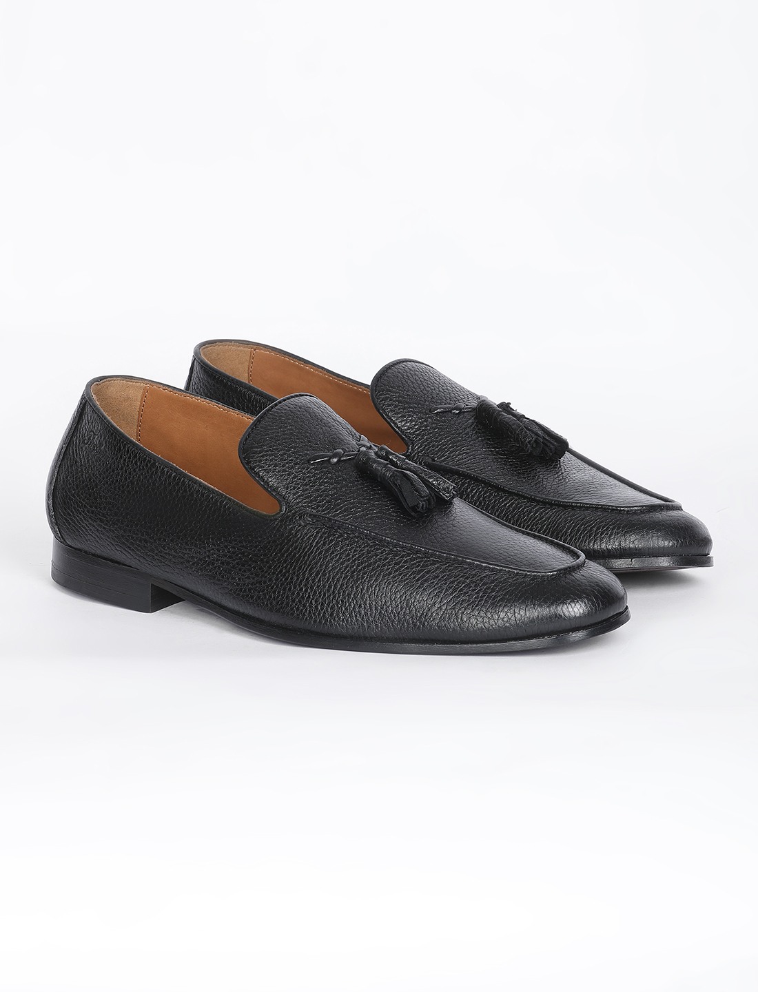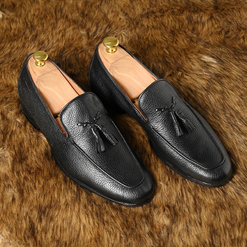 Experience unmatched luxury with these black deer leather loafers, crafted for superior softness and elegance. The refined tassel on the saddle adds a classic touch, while the premium leather sole ensures durability and sophistication. Designed for those who appreciate both comfort and style, these shoes offer a plush fit for all-day wear. Perfect for formal occasions or upscale casual ensembles.
